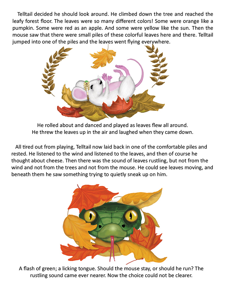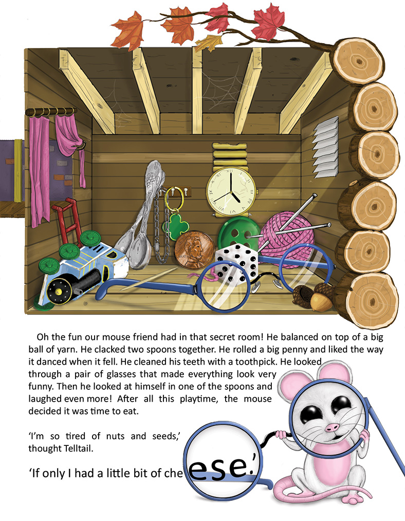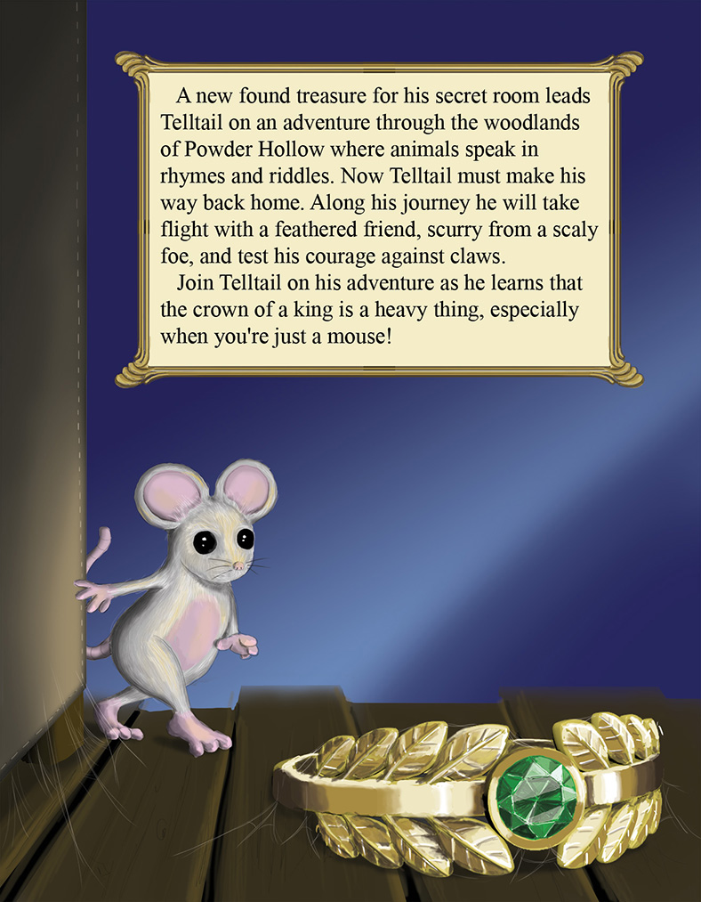 A new found treasure for his secret room leads Telltail on an adventure through the woodlands of Powder Hollow where animals speak in rhymes and riddles. Now our little mouse friend must make his way back home. Along his journey he will take flight with a new found friend, scurry from a scaly foe, and test his courage against claws.