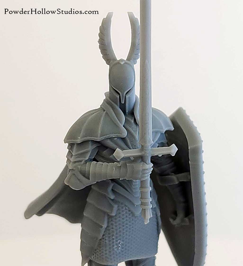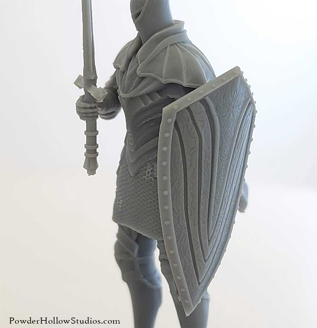-High Detail: Captures the intricate engravings and formidable silhouette of a warrior knight, from his elegant helm to the flowing lines of his iconic armor.