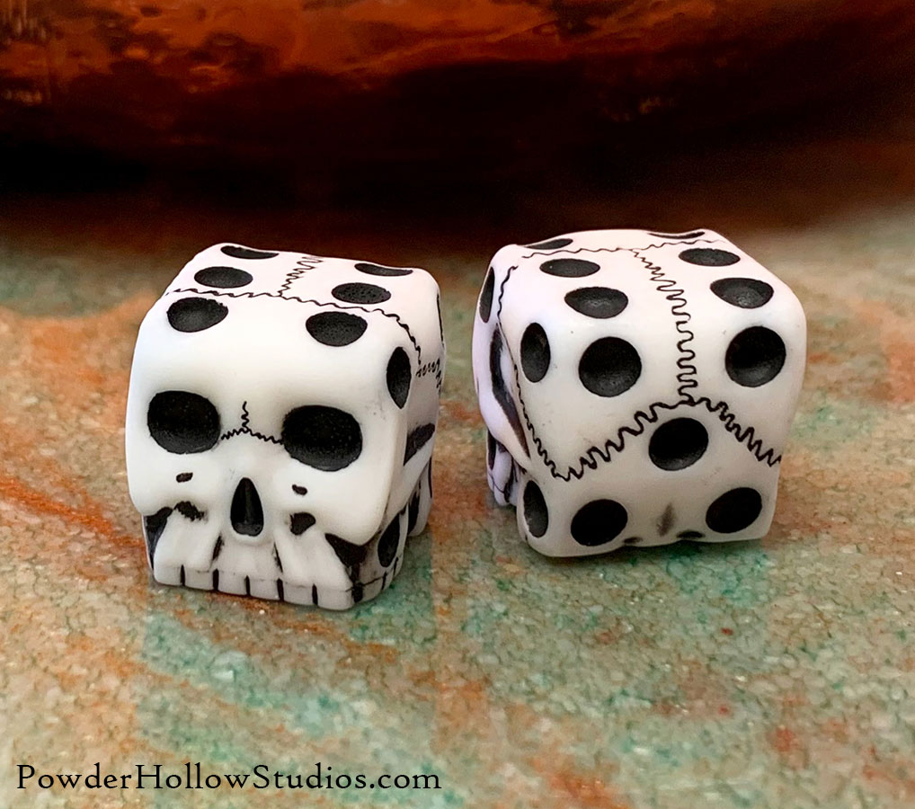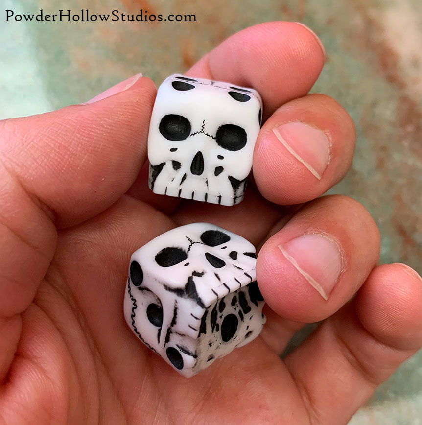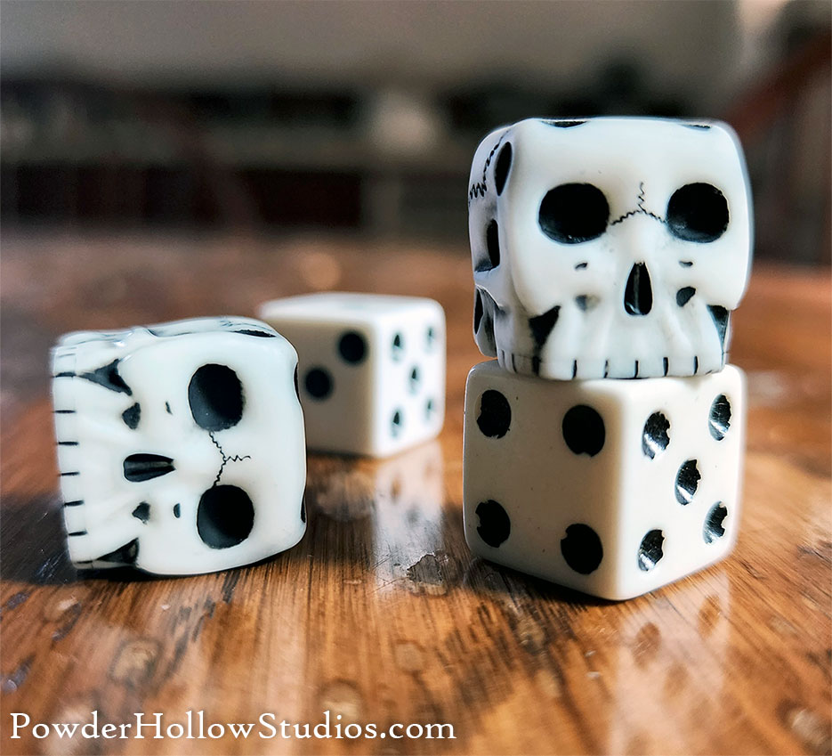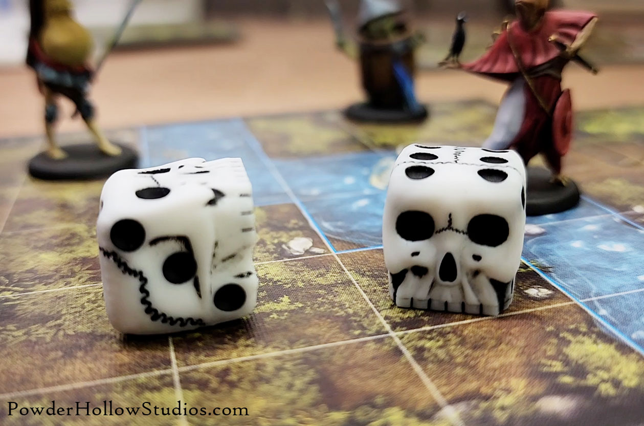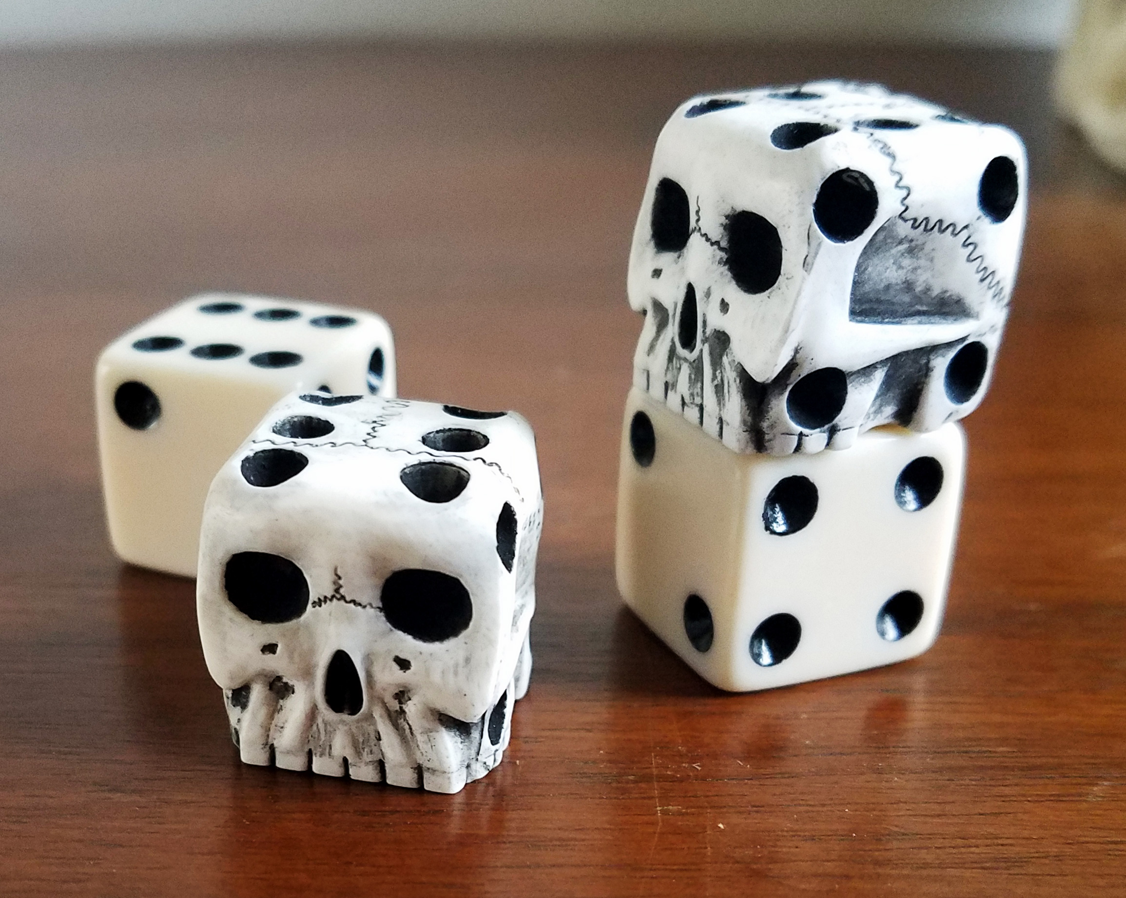 Roll dem bones! These 6 sided dice are in the shape of a human skull! Perfect for that two handed great sword of yours or just to show off, these dice are a great gift idea for any gamer geek, board game enthusiast, or fan of skulls, bones and skeletons.
