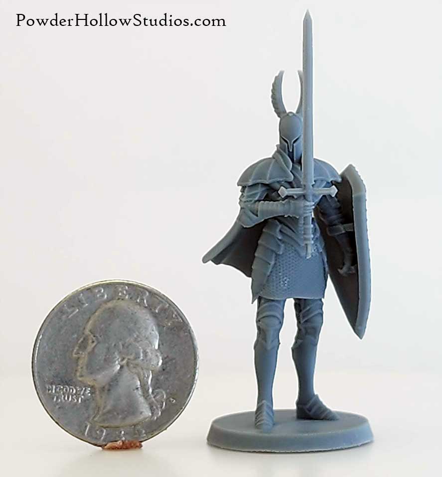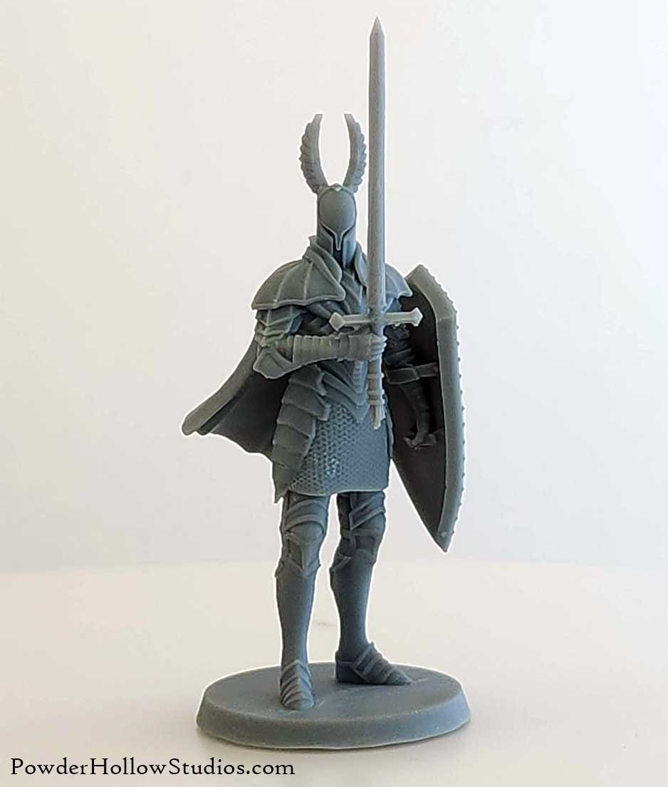 Stand resolute against the encroaching dark with this highly detailed resin miniature of a legendary Silver Knight. A silent guardian from a fallen age, this warrior is a perfect addition to any fantasy tabletop campaign.
