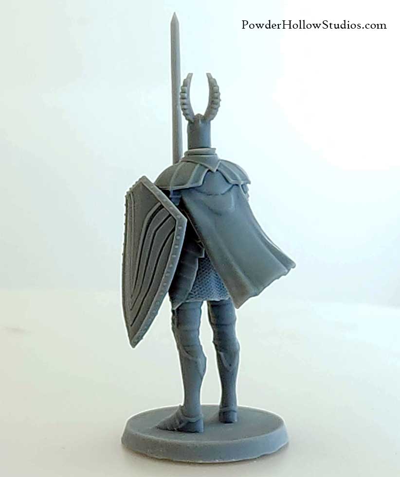 -High Detail: Captures the intricate engravings and formidable silhouette of a warrior knight, from his elegant helm to the flowing lines of his iconic armor.
